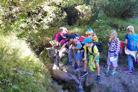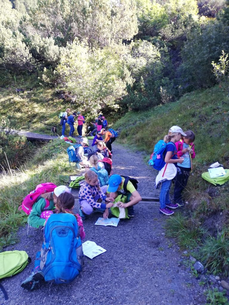 Mit dem Bus fuhren wir ins Malbun, wo wir den Forscherweg unter die Füsse nahmen und uns in altersdurchmischten Gruppen mit Wetter, Wasser, Tieren und weiteren "Naturthemen" beschäftigten, passend zu unserem Jahresthema "der Natur auf der Spur".