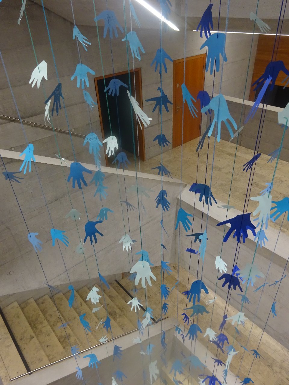 Passend dazu haben sich (fast) alle Kinder und Lehrpersonen blau angezogen, Hände gebastelt und sich mit den Kinderrechten beschäftigt. Entstanden sind ein tolles Foto, eine coole Deko fürs Treppenhaus und bestimmt auch neu gewonnene Erkenntnisse zu den Kinderrechten.